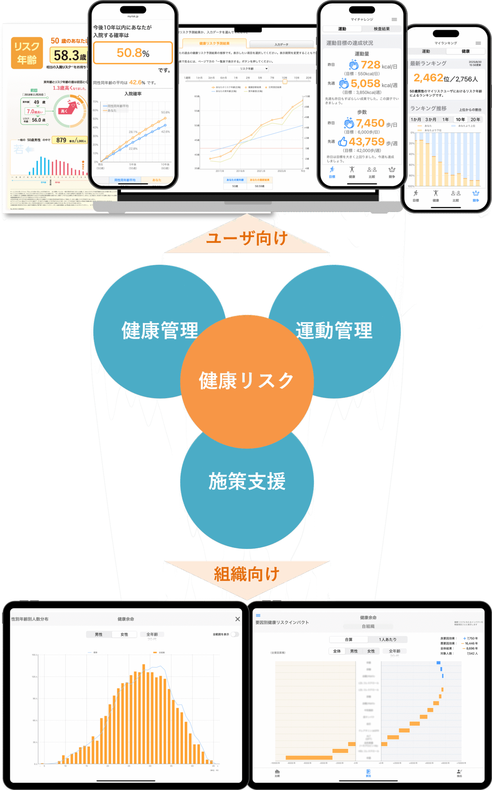 マイリスクは、従来のWebや印刷レポートに加えて、「マイリスク®︎ アプリ」を提供し、運動と健康を一体化したサービスでユーザに日々寄り添うツールになります。また、ユーザのみならず、保険者の健康増進施策担当者向けの「マイリ […] -