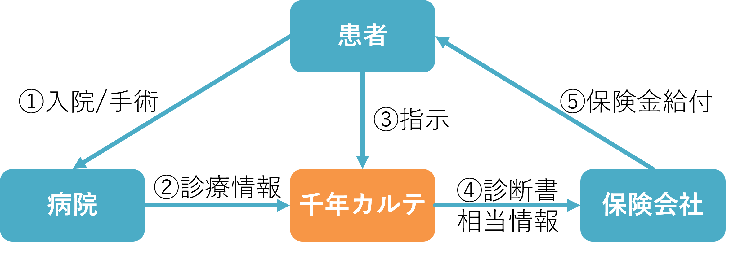 患者は入院や手術をしたら、千年カルテに保険会社への情報提供を同意