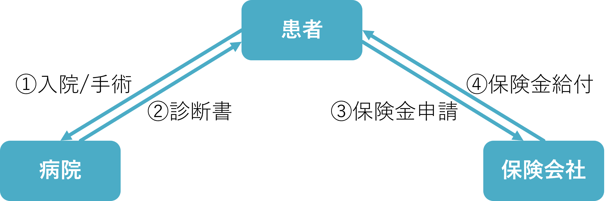 患者は入院や手術をしたら、診断書を発行してもらい、保険会社に申請